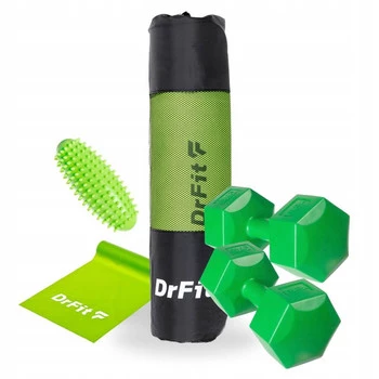 Zielony zestaw treningowy - mata NBR, hantle, guma oporowa i roller z wypustkami