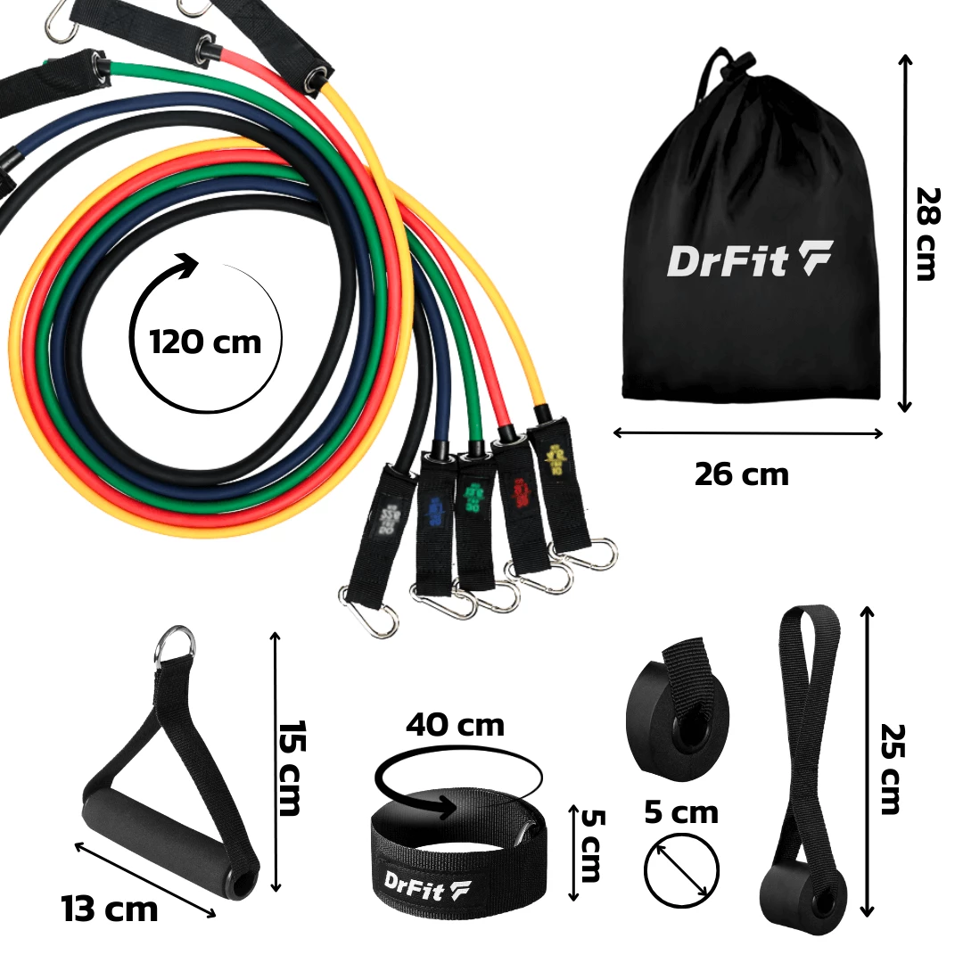 W zestawie DrFit znajdziesz gumy o różnych stopniach oporu, co daje Ci pełną możliwość dopasowania intensywności ćwiczeń do swoich indywidualnych potrzeb i celów.