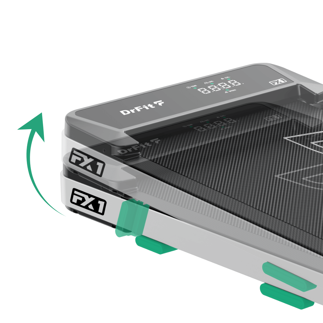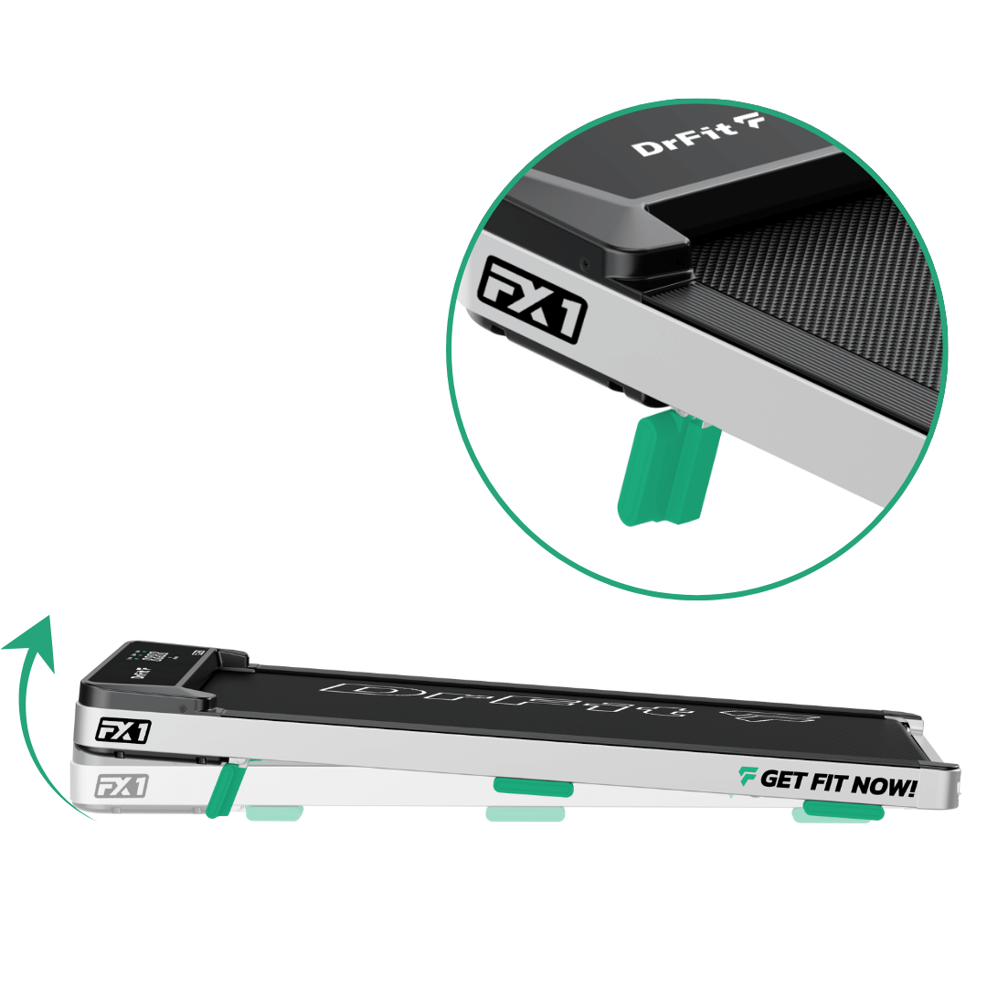 Z bieżnią do chodzenia DrFit jest inaczej – ma 10 cm wysokości i 112 cm długości, więc po zakończonym marszu bez trudu wsuniesz ją pod łóżko lub kanapę.