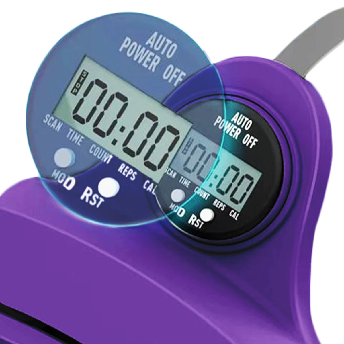 - Licznik z wyświetlaczem LCD – automatyczne liczenie obrotów, czasu, spalonych kalorii i liczby powtórzeń; funkcje: SCAN, TIME, COUNT, REPS, CAL, MOD, RST