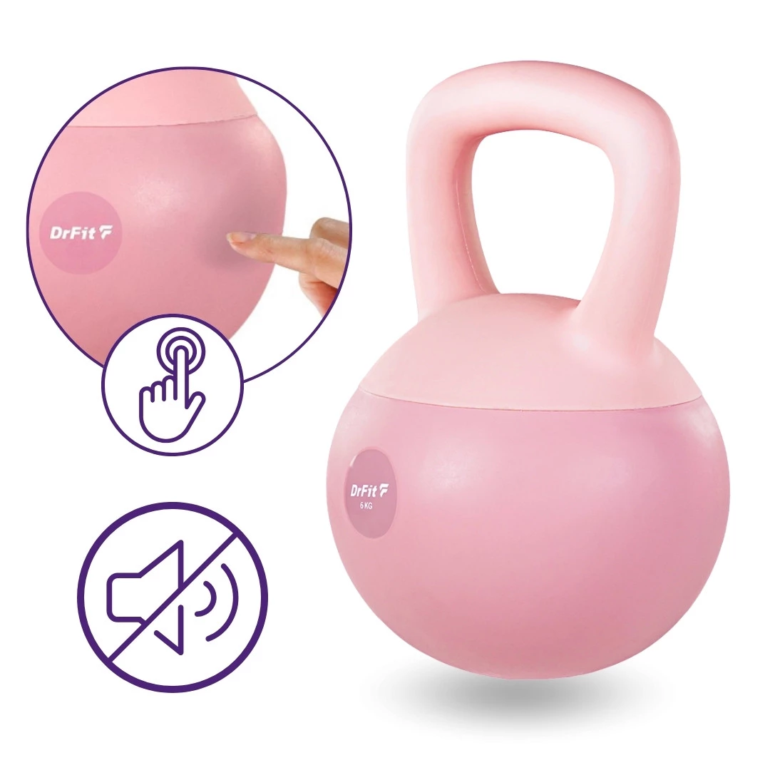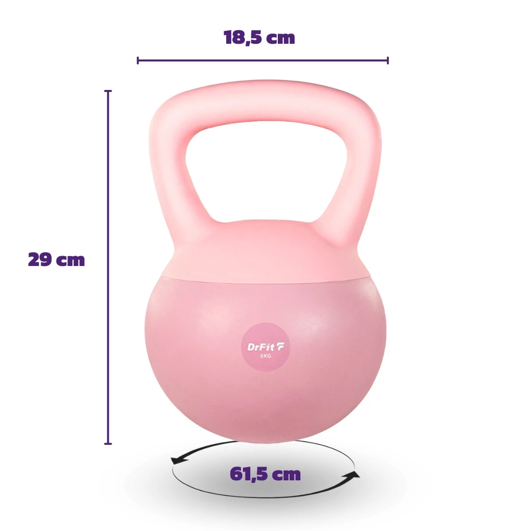 Wybór kettlebell DrFit zależy tylko od Twoich potrzeb i celów. Różowy kettlebell o wadze 6 kg i 8 kg został zaprojektowany z myślą o dynamicznych ćwiczeniach, takich jak swingi czy treningi obwodowe.