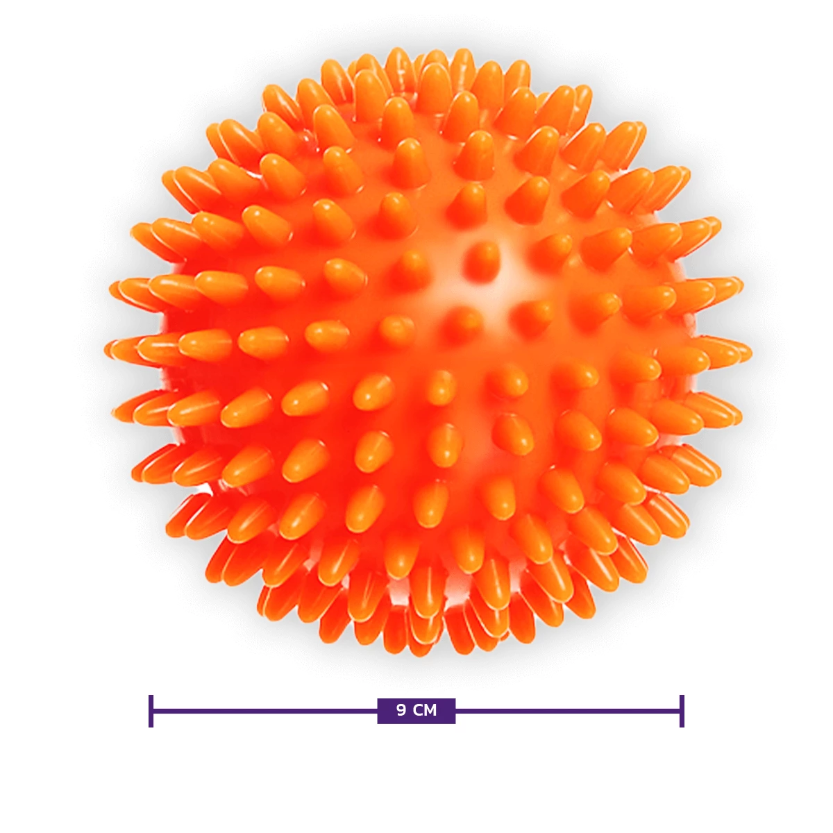DrFit Miękka piłka do masażu rehabilitacyjnego z wypustkami sensorycznymi ø 9 cm w kolorze pomarańczowym