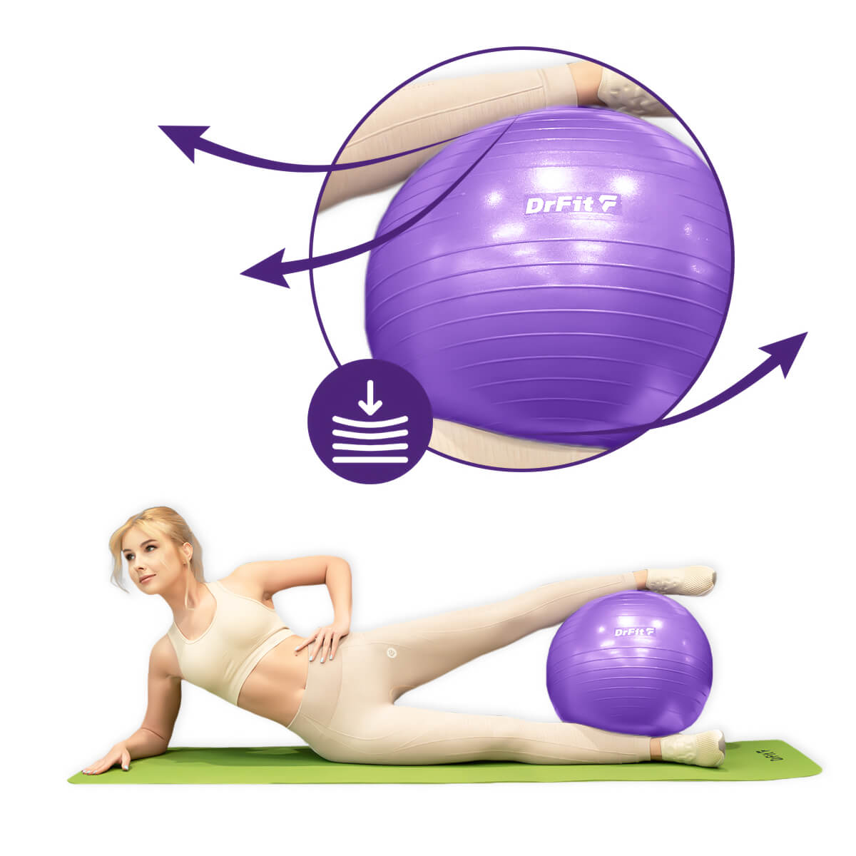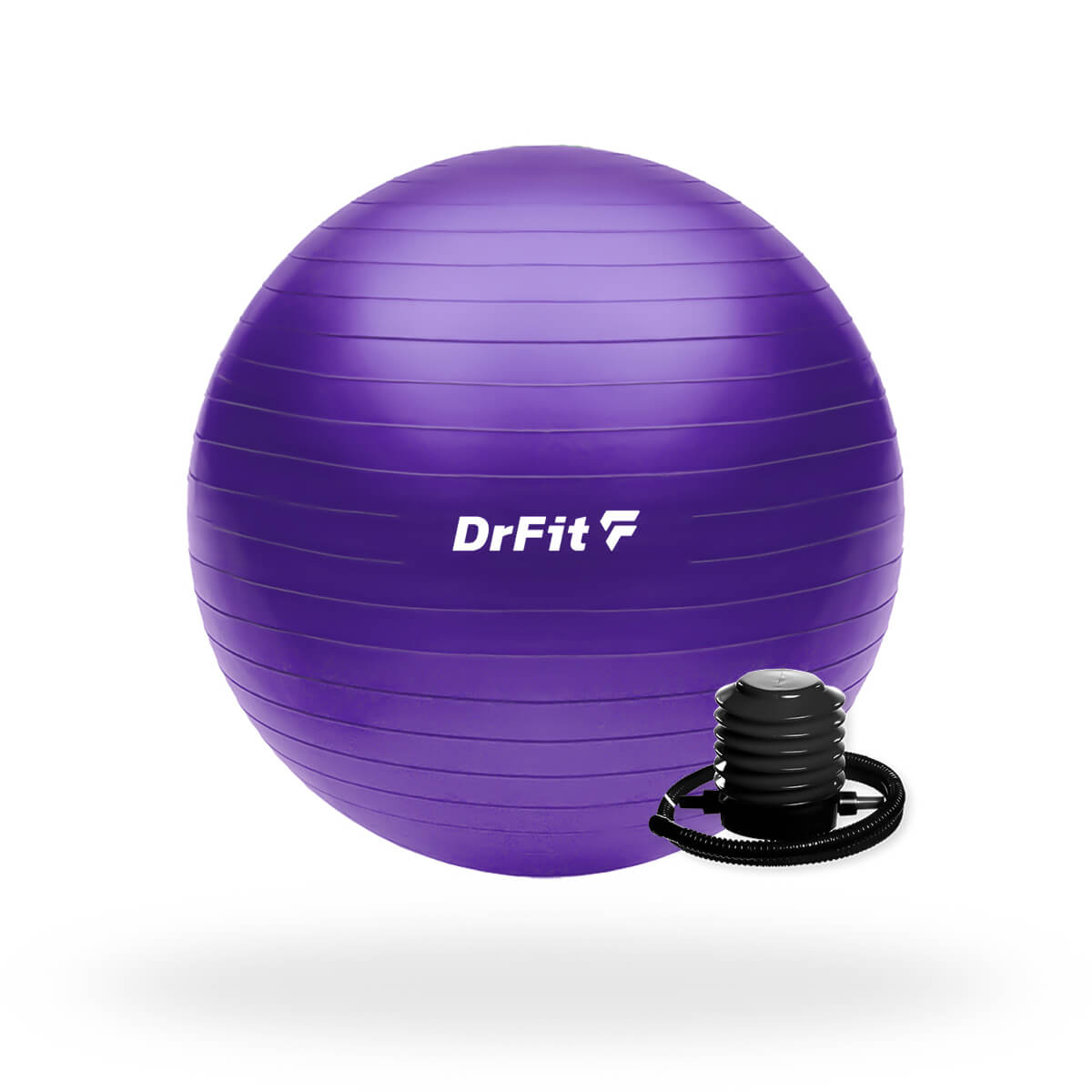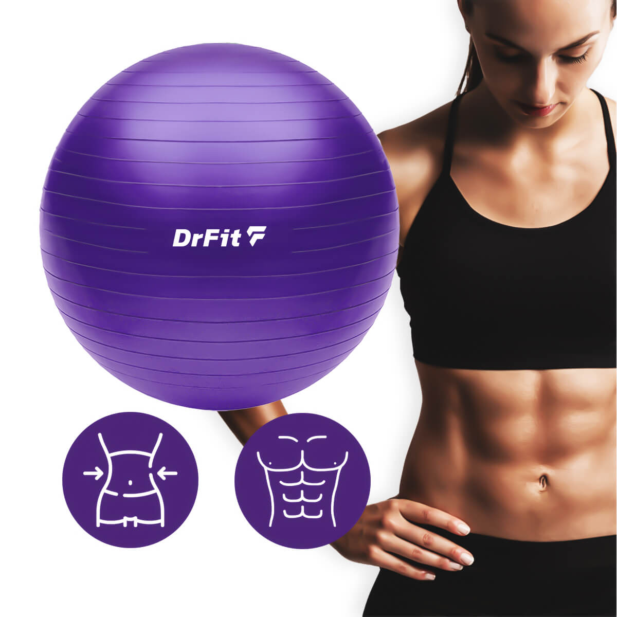 Piłka do ćwiczeń fitness i rehabilitacji z pompką DrFit ø 55 fioletowa - Twoja codzienna dawka ćwiczeń i uśmiechu!