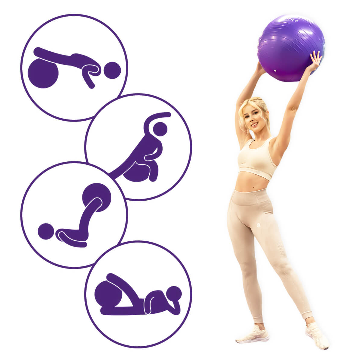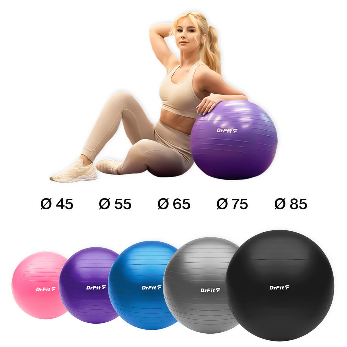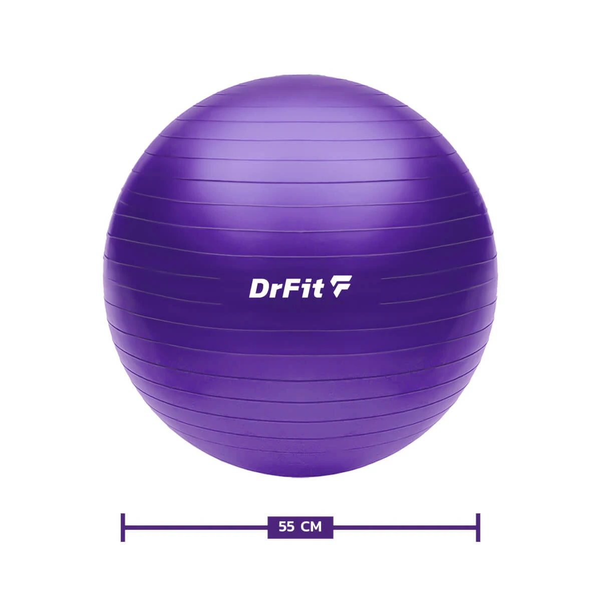 Piłka do ćwiczeń fitness i rehabilitacji z pompką DrFit ø 55 fioletowa - Twoja codzienna dawka ćwiczeń i uśmiechu!