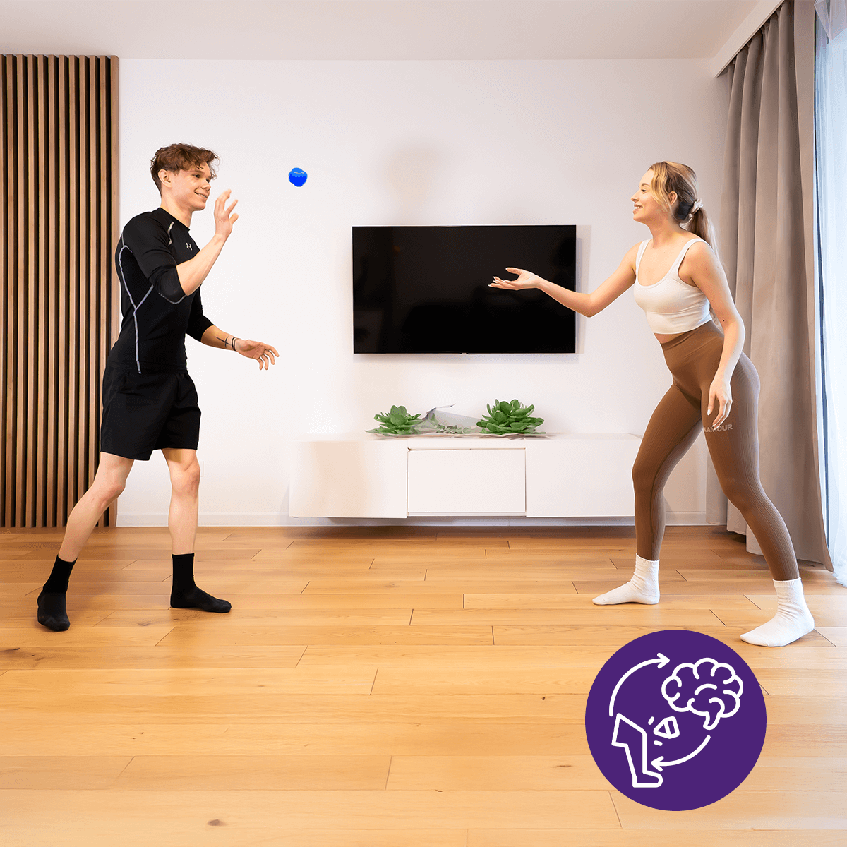 - Ćwiczenia sensoryczne – piłka do treningu sensorycznego stymuluje układ nerwowy, co pomaga w poprawie czucia ciała i precyzji ruchów, szczególnie w treningach motorycznych.