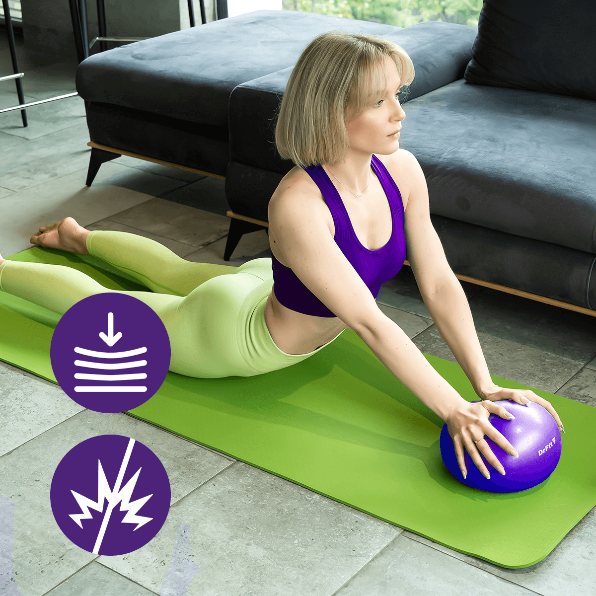 Antypoślizgowa powierzchnia piłki gimnastycznej DrFit zapewnia bezpieczeństwo nawet podczas intensywnych sesji treningowych.
