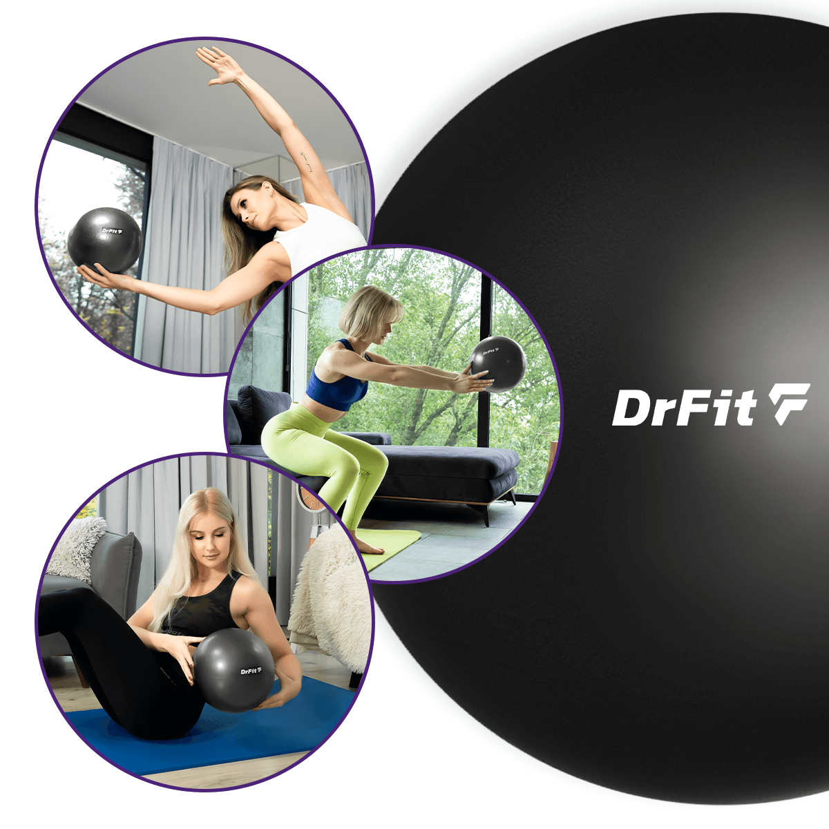 Piłka gimnastyczna wytrzymała do ćwiczeń, rehabilitacji i treningów ø 25 DrFit - czarna - gotowa na każdy trening, gdziekolwiek jesteś