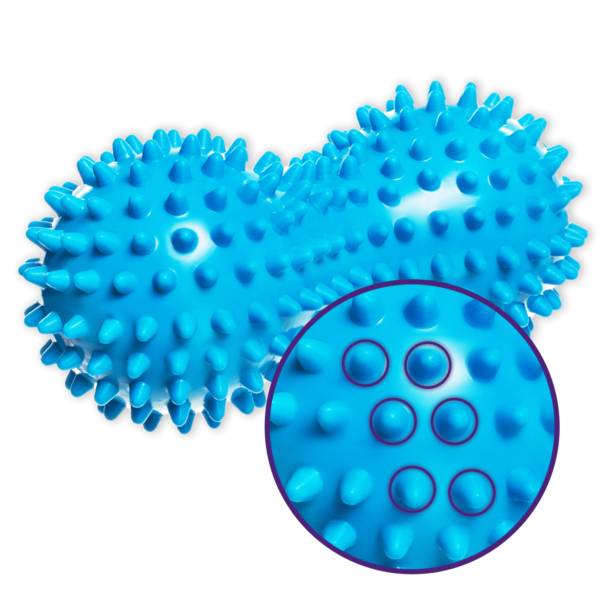 DrFit Podwójna piłeczka masująca z wypustkami sensorycznymi - niebieska
