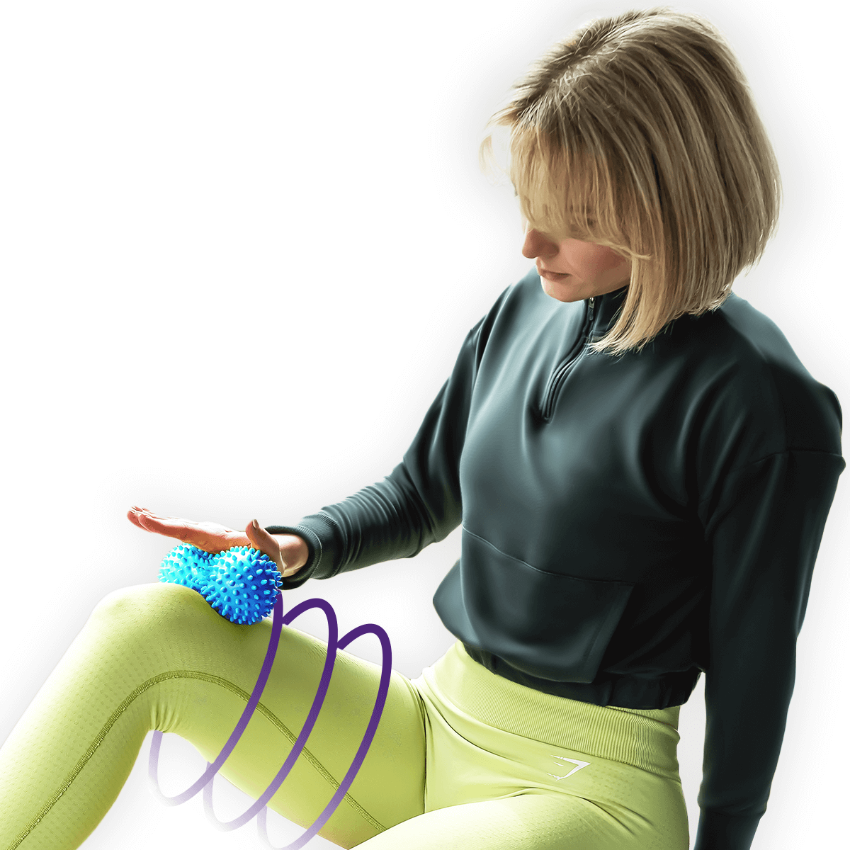 Rehabilitacja po urazach – wypustki na piłce duoball DrFit stymulują różne grupy mięśni, wspierając rehabilitację i regenerację po urazach.