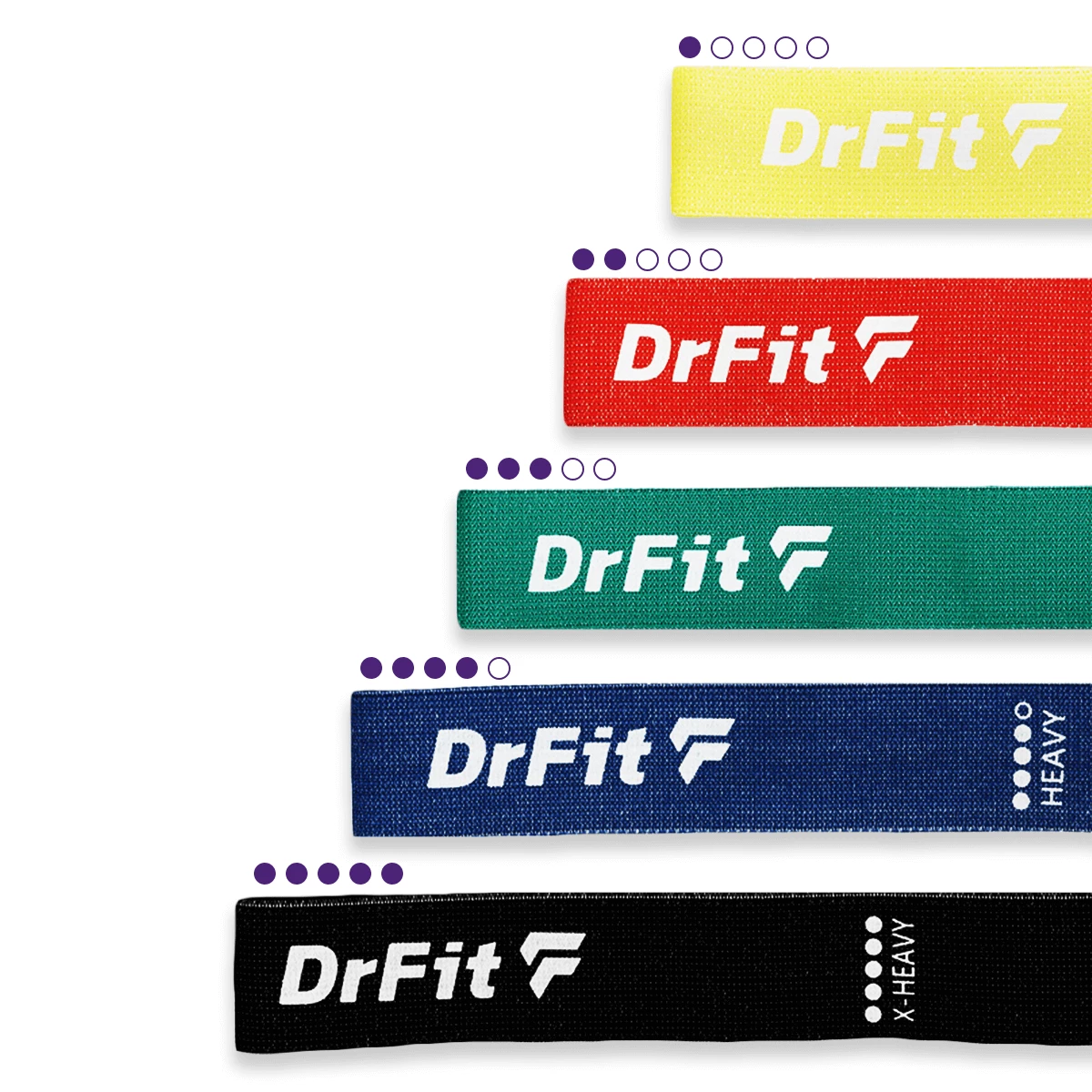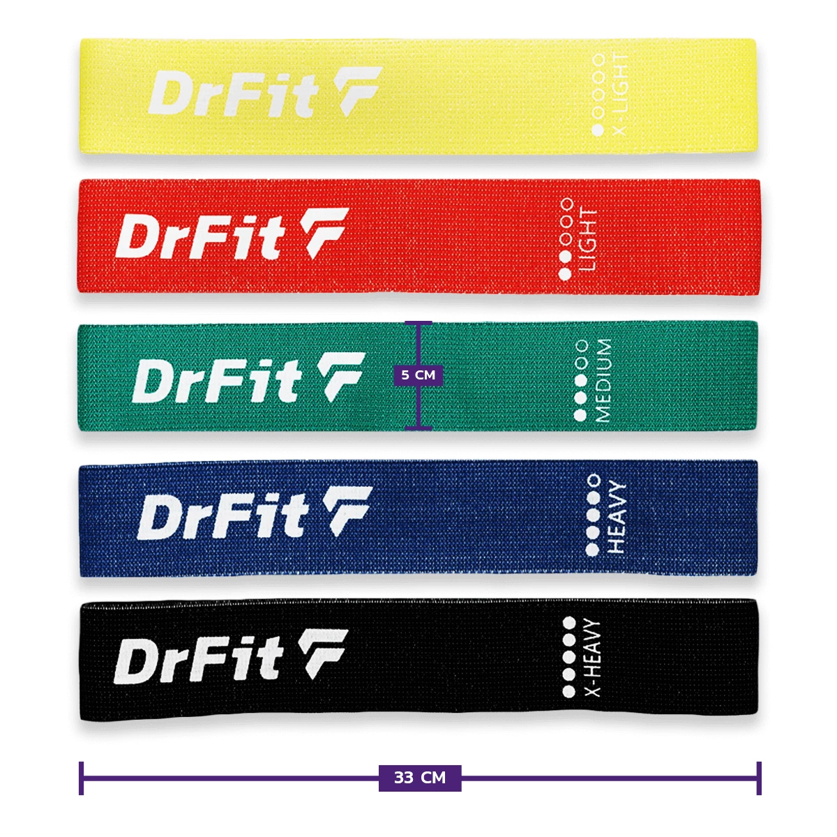 DrFit zestaw elastycznych taśm oporowych do treningu bioder - 5 sztuk