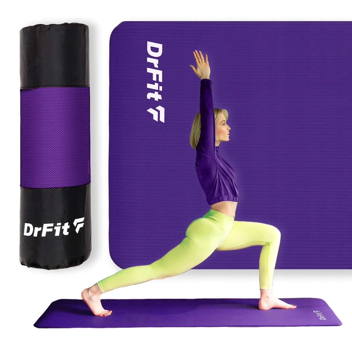 Mata NBR DrFit: kolor fioletowy, 183 × 60 × 1 cm, materiał NBR, antypoślizgowa, miękka, grubsza, lekka do transportu.